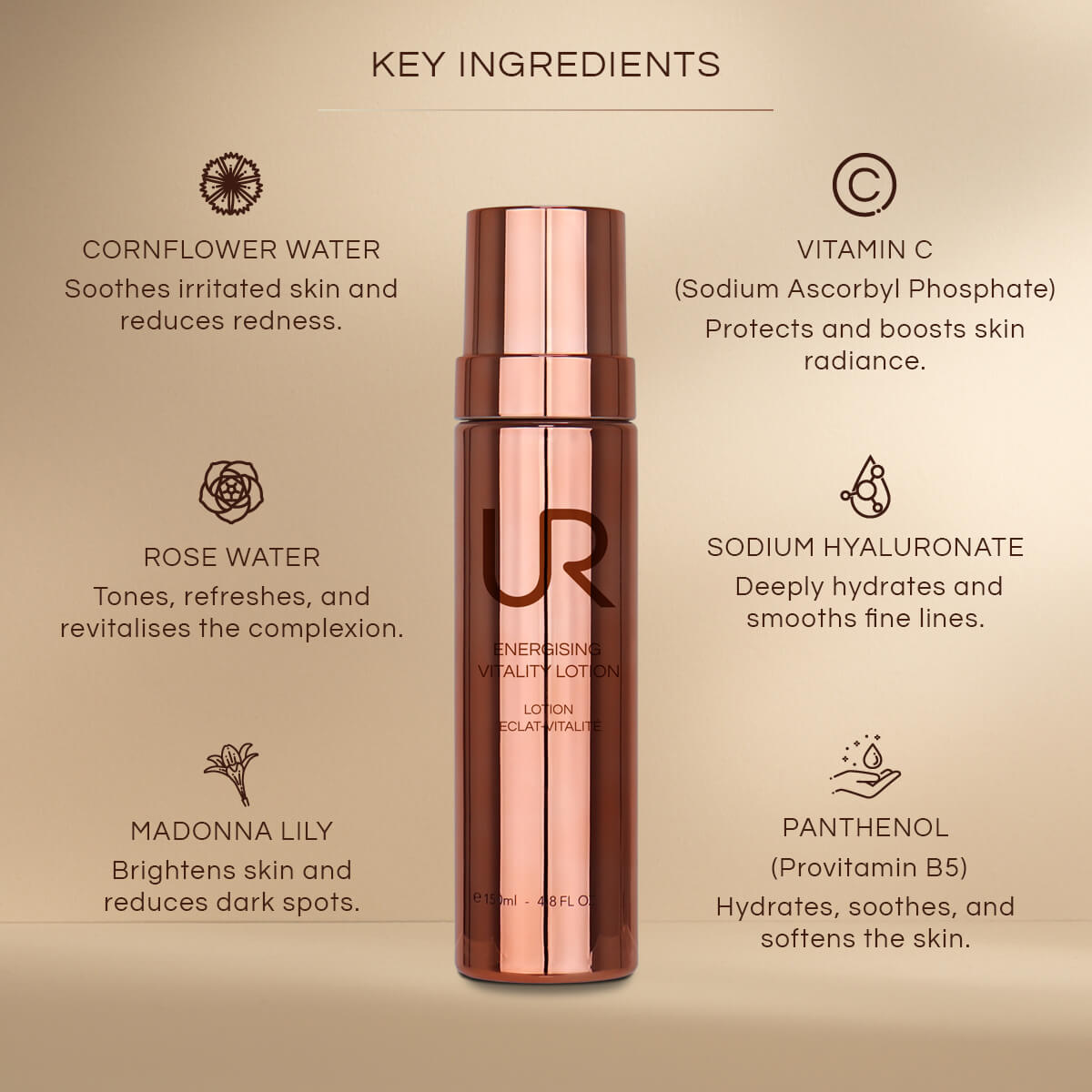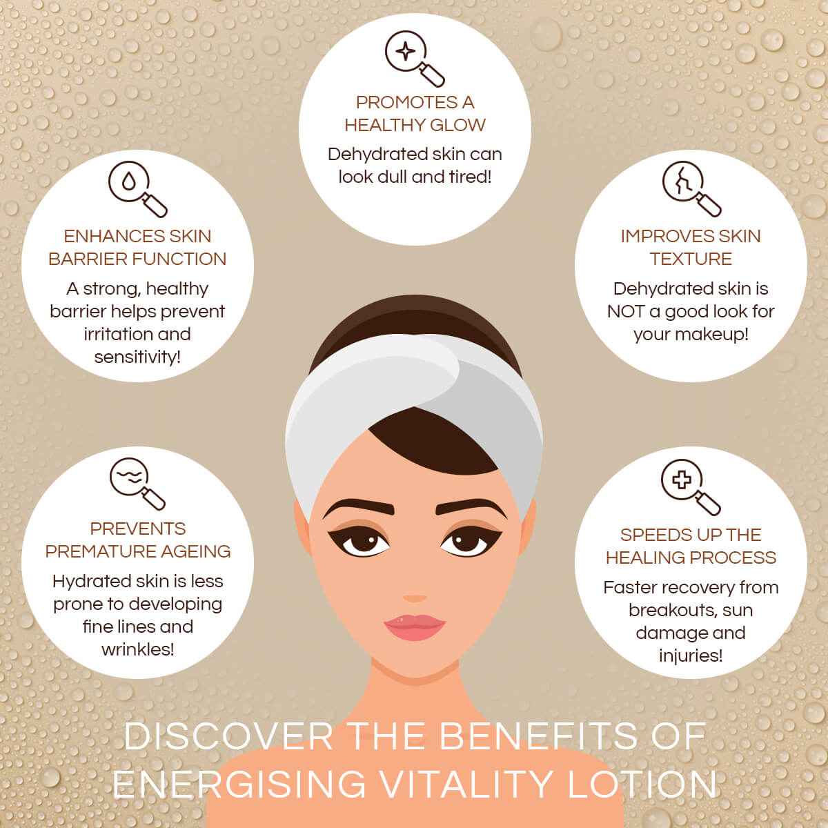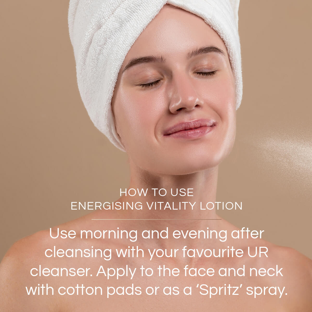 Suitable for daily use, we recommend you use Energising Vitality Lotion after cleansing and before your favourite serums and moisturisers. This product can also be kept in your fridge as a cooling “top up” to your hydration throughout the day!