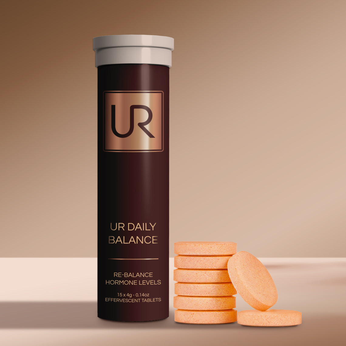 Introducing UR Daily Balance Effervescent Tablets, a powerful and natural solution designed to balance fluctuating hormone levels in adults and teens. Hormonal imbalances can manifest at various life stages, leading to a range of disruptive symptoms like mood swings, insomnia, hot flushes, menstrual cramps, hair loss, weight gain, and brain fog. These imbalances can affect your overall quality of life, leaving you feeling out of sync.