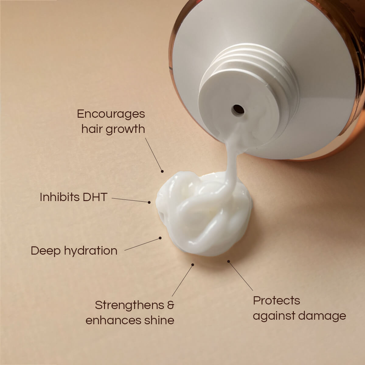 Key benefits include promoting hair growth, inhibiting DHT, providing moisture and nourishment without heaviness, and leaving hair shiny, soft, and manageable.