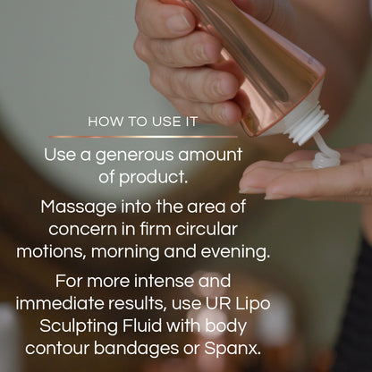 Per risultati più intensi e immediati, utilizzare Lipo Sculpting Fluid con bende per il contorno del corpo o abbigliamento compressivo.