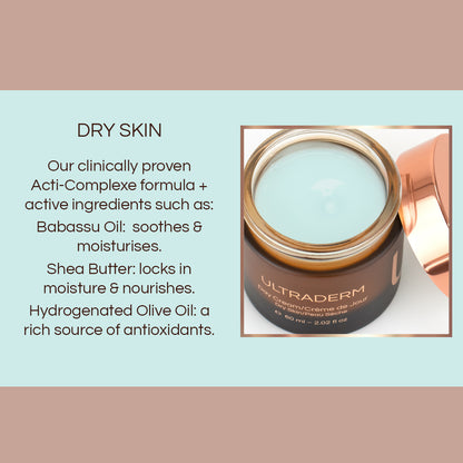 UltraDerm Day Cream for Dry Skin is specially formulated to deeply hydrate and nourish dehydrated skin. Enriched with our patented Acti-Complexe, a blend of Marine Collagen, Hyaluronic Acid, and Earth Marine Sea Water, it helps restore the skin’s natural moisture barrier while delivering visible anti-ageing benefits for a smoother, more radiant complexion.